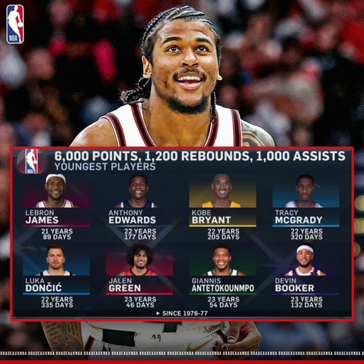 至此,杰倫-格林生涯得分、籃板、助攻數(shù)來到了6040/1283/1003,他成為了聯(lián)盟自1976-77賽季合并以來達(dá)成生涯6000分1200板1000助第六年輕的球員(23歲46天),具體如下: