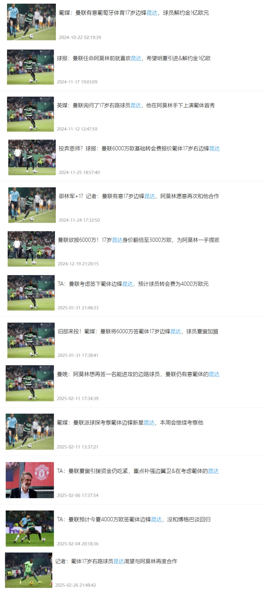昆達2019年加盟葡萄牙體育青訓,去年夏天被阿莫林提拔至葡體一線隊。從去年10月開始,就持續(xù)有曼聯(lián)打算簽下昆達的傳聞。