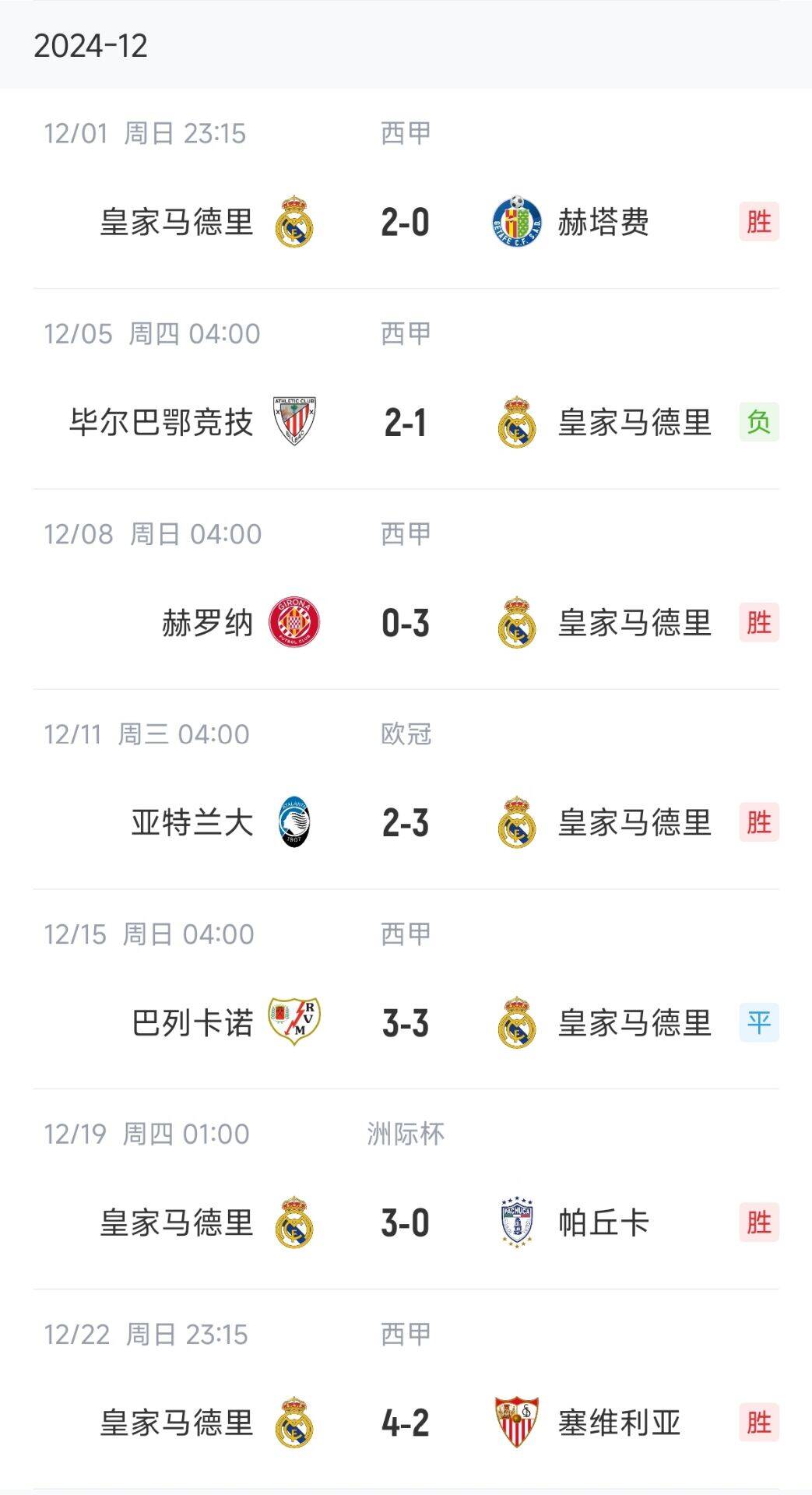12月是皇馬3天1賽開(kāi)始的月份,這個(gè)月他們21天內(nèi)打了7場(chǎng),包括西甲、歐冠和洲際杯。