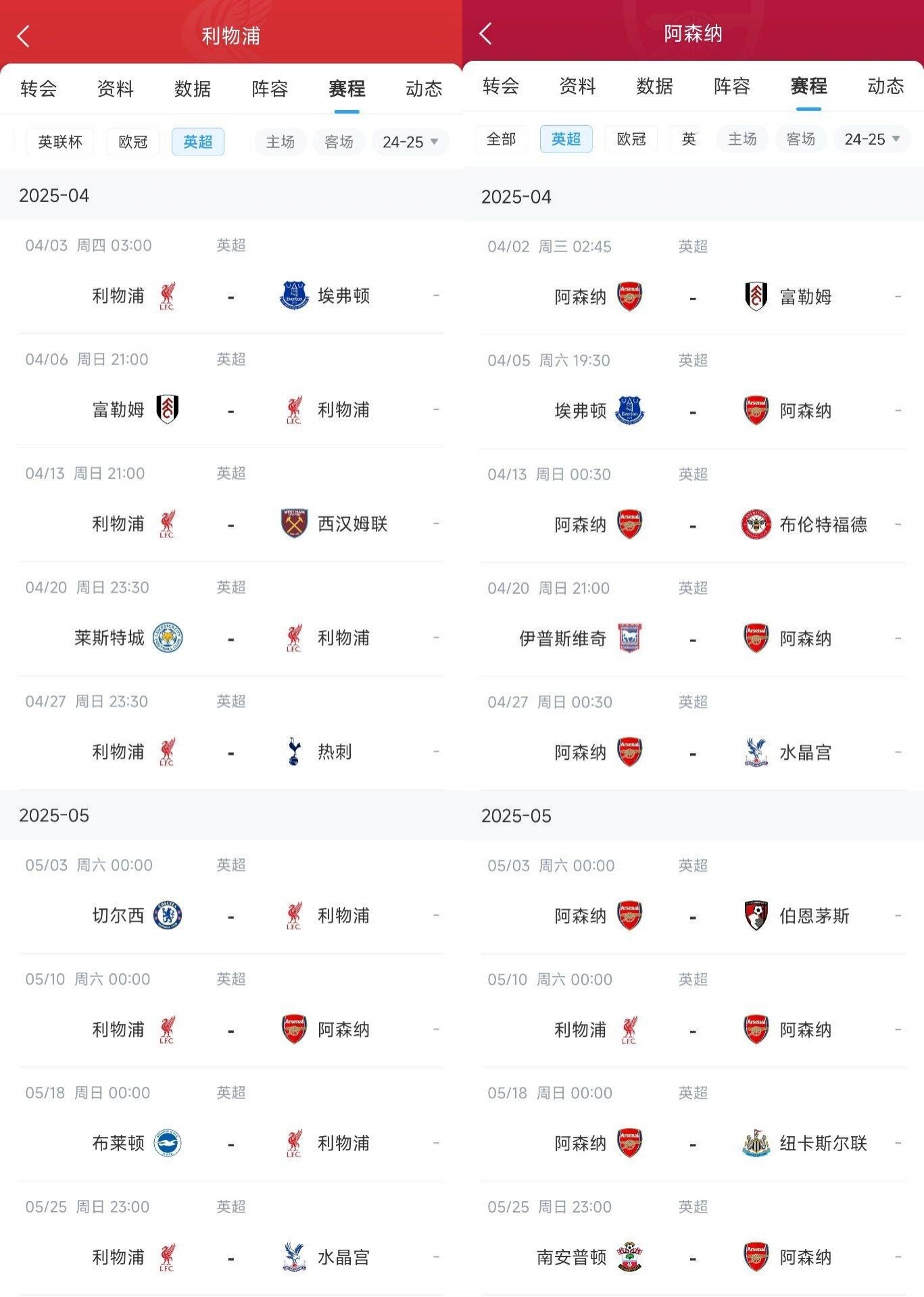 剩9輪差12分!利物浦阿森納賽程對比:第36輪交鋒,紅軍賽程略難