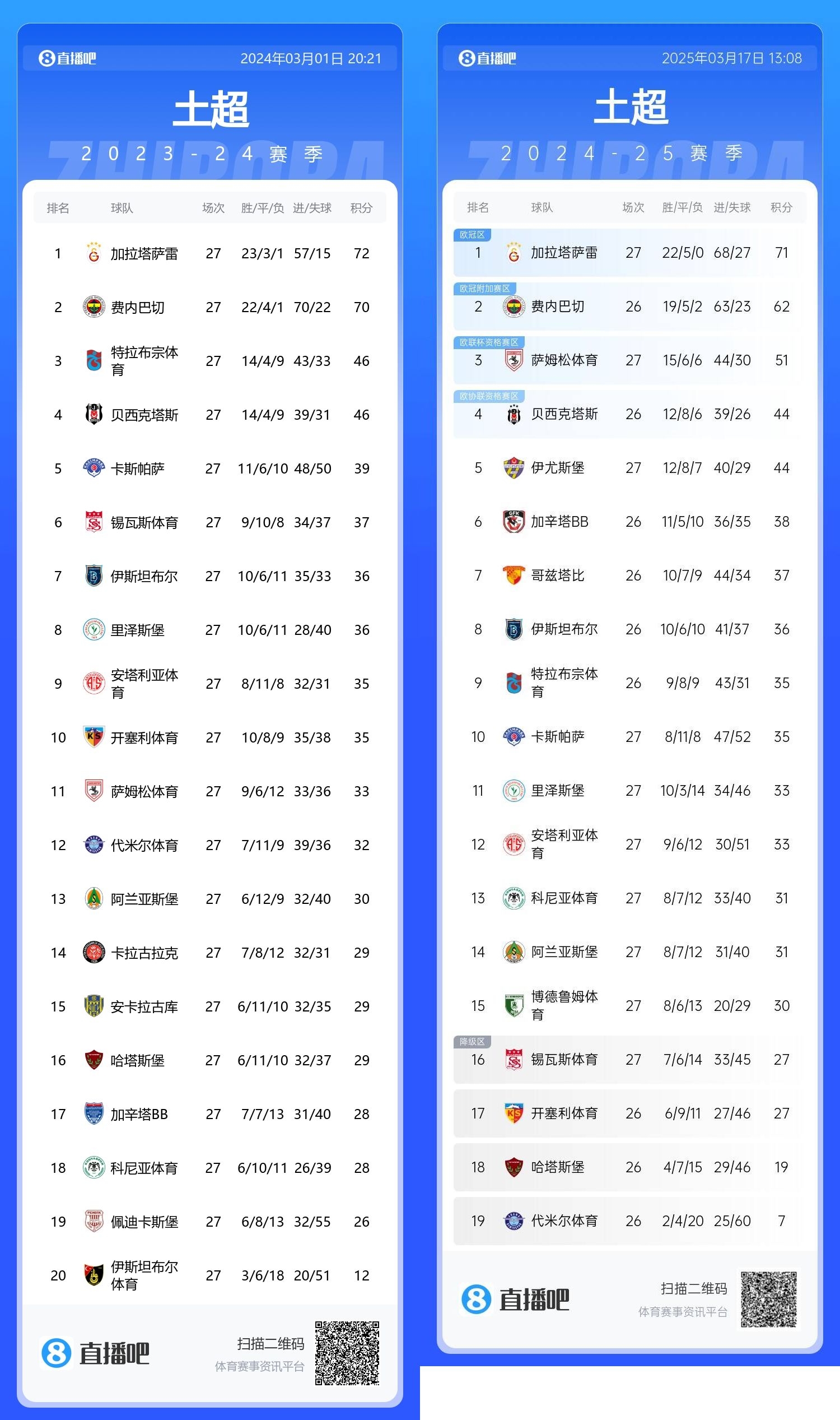 二人轉(zhuǎn)變獨(dú)角戲?去年土超前2差2分&大斷層領(lǐng)跑 今年費(fèi)內(nèi)巴切掉隊(duì)