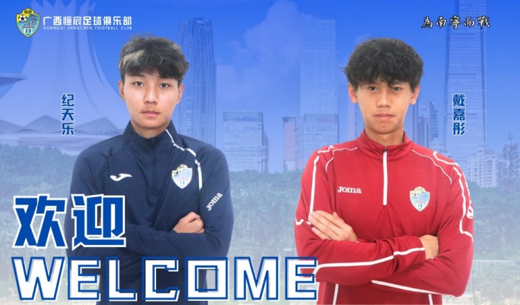 ?廣西恒宸足球俱樂部歡迎紀天樂、戴嘉彤的加盟,讓我們一起為新賽季共同努力,為球迷們奉獻更多精彩比賽!