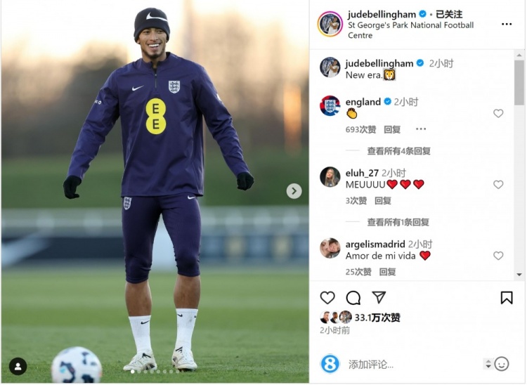 貝林厄姆社媒曬英格蘭隊(duì)訓(xùn)練照:三獅軍團(tuán)新時代