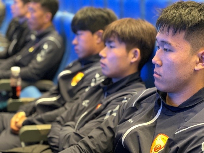 最后,現(xiàn)役中甲聯(lián)賽裁判監(jiān)督尹航進行了職業(yè)聯(lián)賽判罰統(tǒng)一尺度宣講。他的宣講以文字結(jié)合過往實戰(zhàn)視頻案例的形式展現(xiàn),給隊員們留下了深刻印象。
