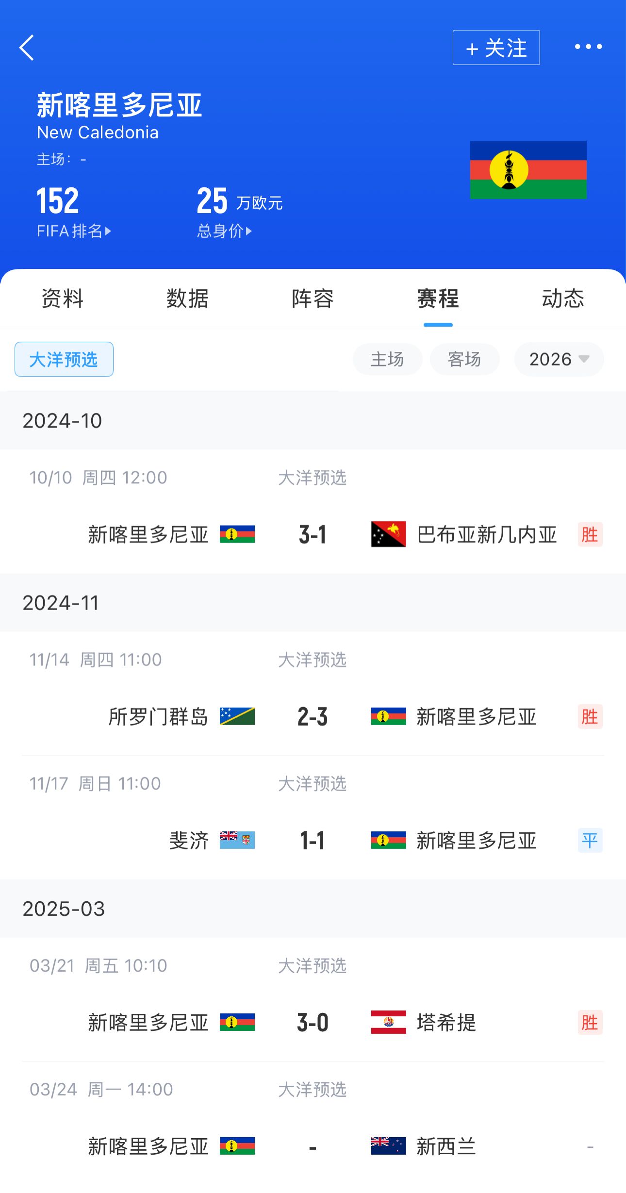 沖擊世界杯!新喀里多尼亞FIFA排名152,身價(jià)25萬歐&不及新西蘭1%