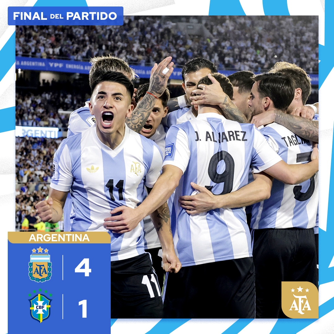 03月26日訊 南美世預(yù)賽第14輪,阿根廷4-1擊敗巴西。為阿根廷破門(mén)的4人分別是阿爾瓦雷斯、恩佐、麥卡利斯特和朱利亞諾-西蒙尼。