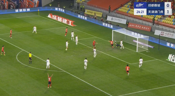 03月02日訊 中超第二輪,成都蓉城vs天津津門虎,比賽第25分鐘,胡荷韜精準(zhǔn)傳中送助攻,韋世豪高難度頭球吊射破門,蓉城1-1扳平津門虎。
