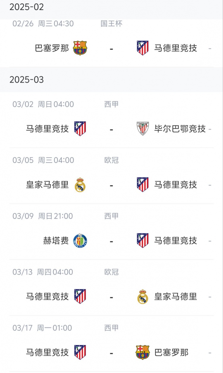 2月24日訊 未來三周,巴薩、皇馬和馬競將迎來一系列關鍵賽事?!睹咳阵w育報》報道,巴薩的賽程相對較為有利,六場比賽中將有四場主場作戰(zhàn)。