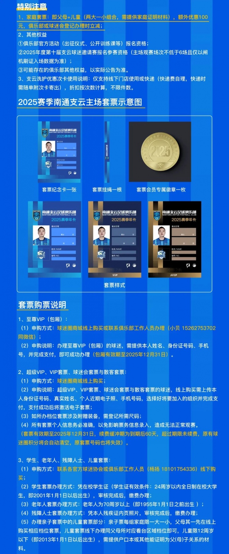 ?(1)2025賽季南通支云足球俱樂(lè)部主場(chǎng)套票先購(gòu)先得,售罄為止;